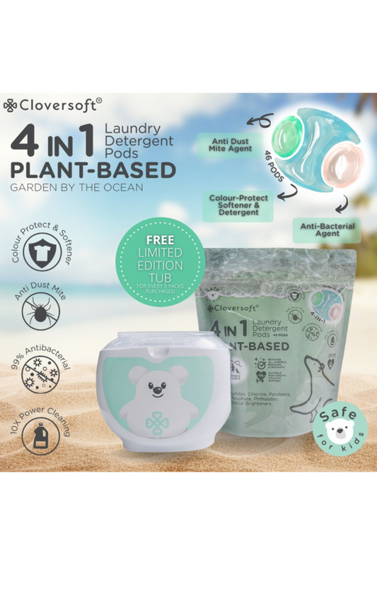 Cloversoft Plant Based 4 in 1 Anti Dust Mite Laundry Pods (Garden by the Ocean) - Bundle of 3 with FREE TUB