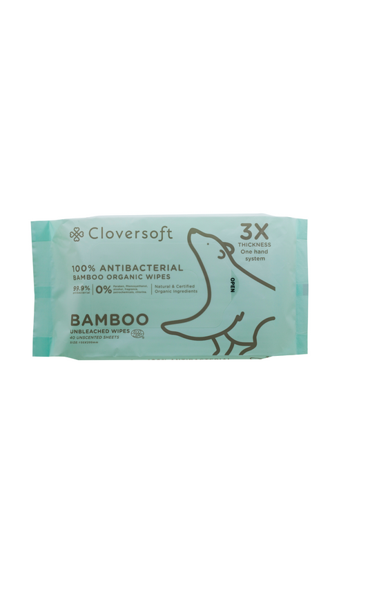 Cloversoft Unbleached Bamboo 99.9% - Antibacterial Organic Wipes (40 Sheets per pack) - Bundle of 10