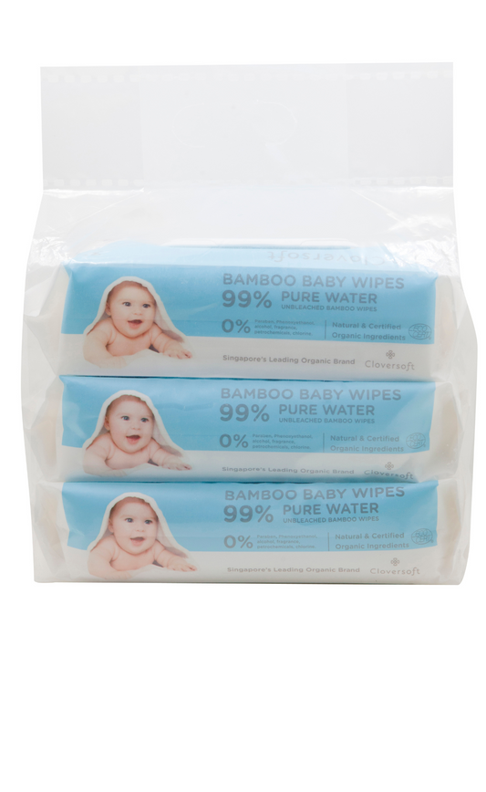 Cloversoft Baby Wipes (Unbleached Bamboo Pure Water Organic Baby Wipes 3 X 70 Sheets) - Bundle of 2