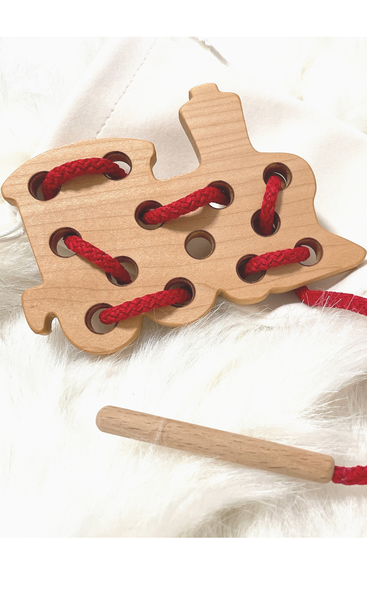 Handmade wooden toys are especially gentle on the skins of our lil' ones. These lacing toys are made with lots of care and love. Edges are carefully sanded and checked, to ensure the best quality for our little ones.