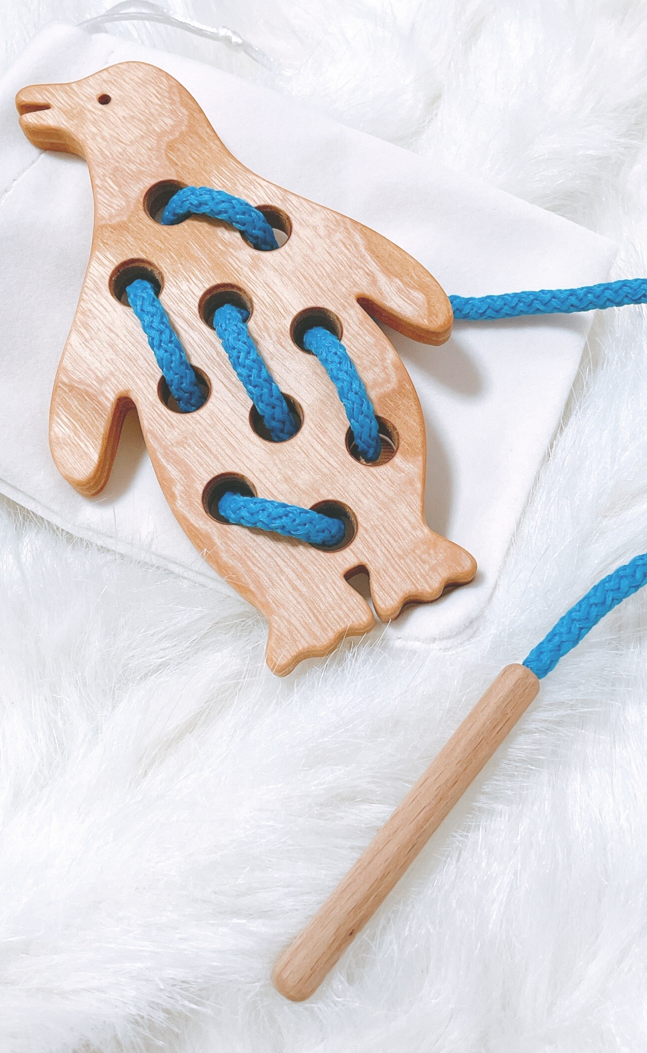 This lacing activity helps young kids to develop good hand-eye coordination, patience and perseverance on task as they learn to thread through the holes.