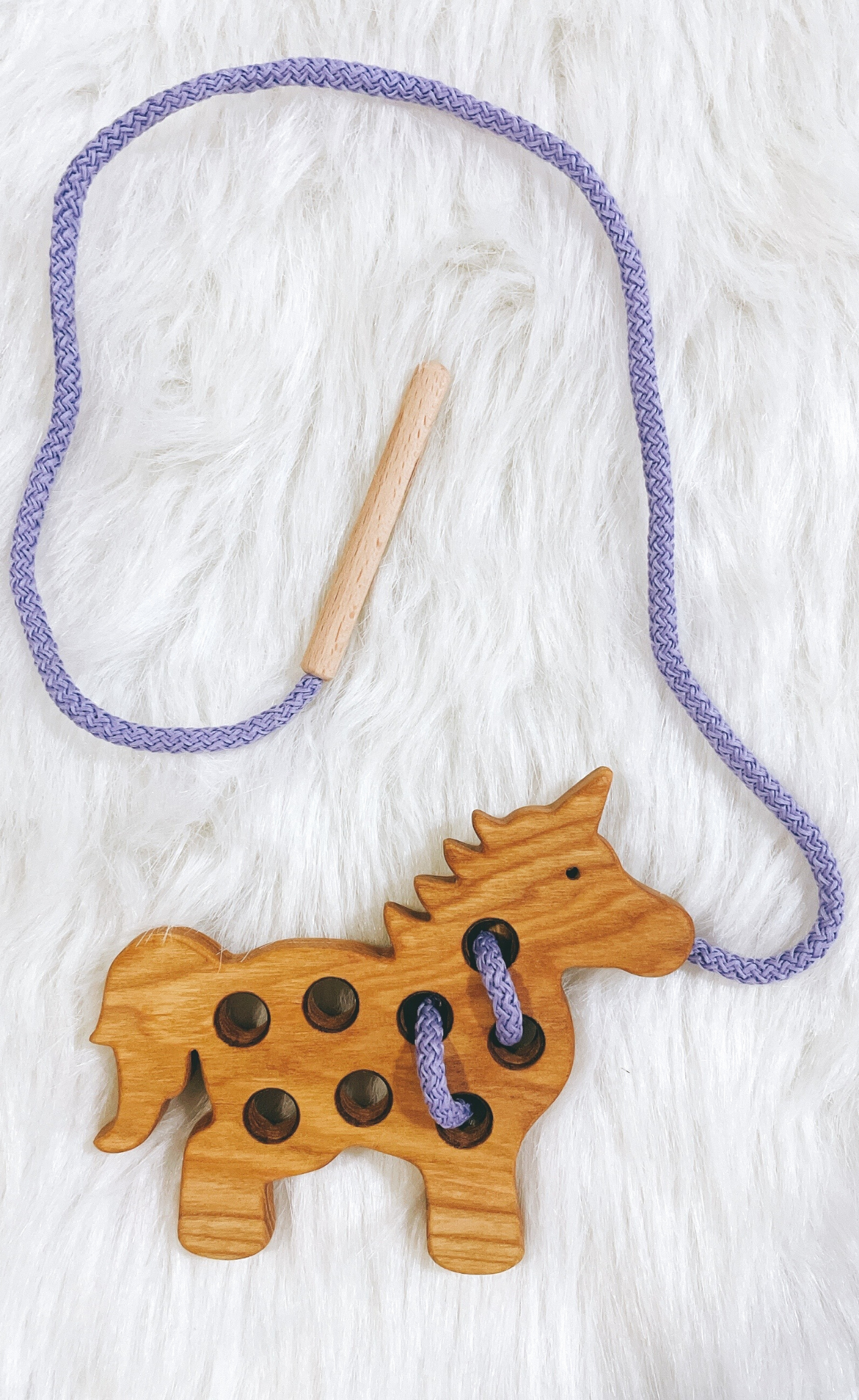 Handmade wooden toys are especially gentle on the skins of our lil' ones. These lacing toys are made with lots of care and love. Edges are carefully sanded and checked, to ensure the best quality for our little ones.