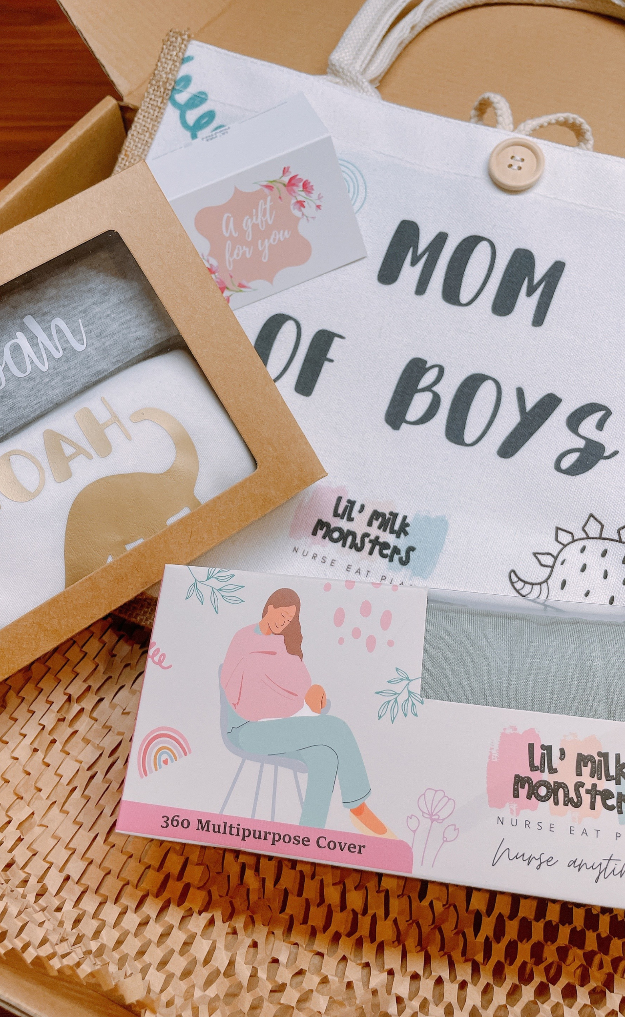 3) 1 x Luxuriously soft Lil' Milk Monsters Nursing cover - select designs from drop down (includes pouch!)